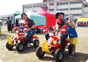 子どもたちに楽しい運転をチャレンジしてもらいたくバギーのネーミングを“チャレンジバギー”にしました。